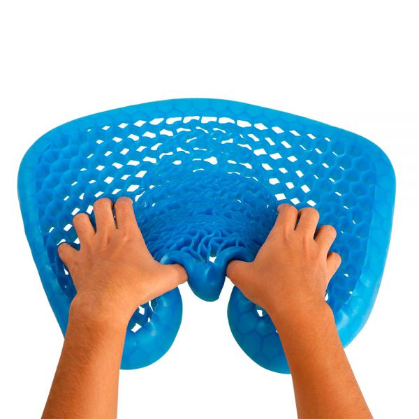 É tão eficiente na absorção de pressão que permite até sentar sobre um ovo cru sem quebrá-lo — demonstrando a alta capacidade de amortecimento do gel.