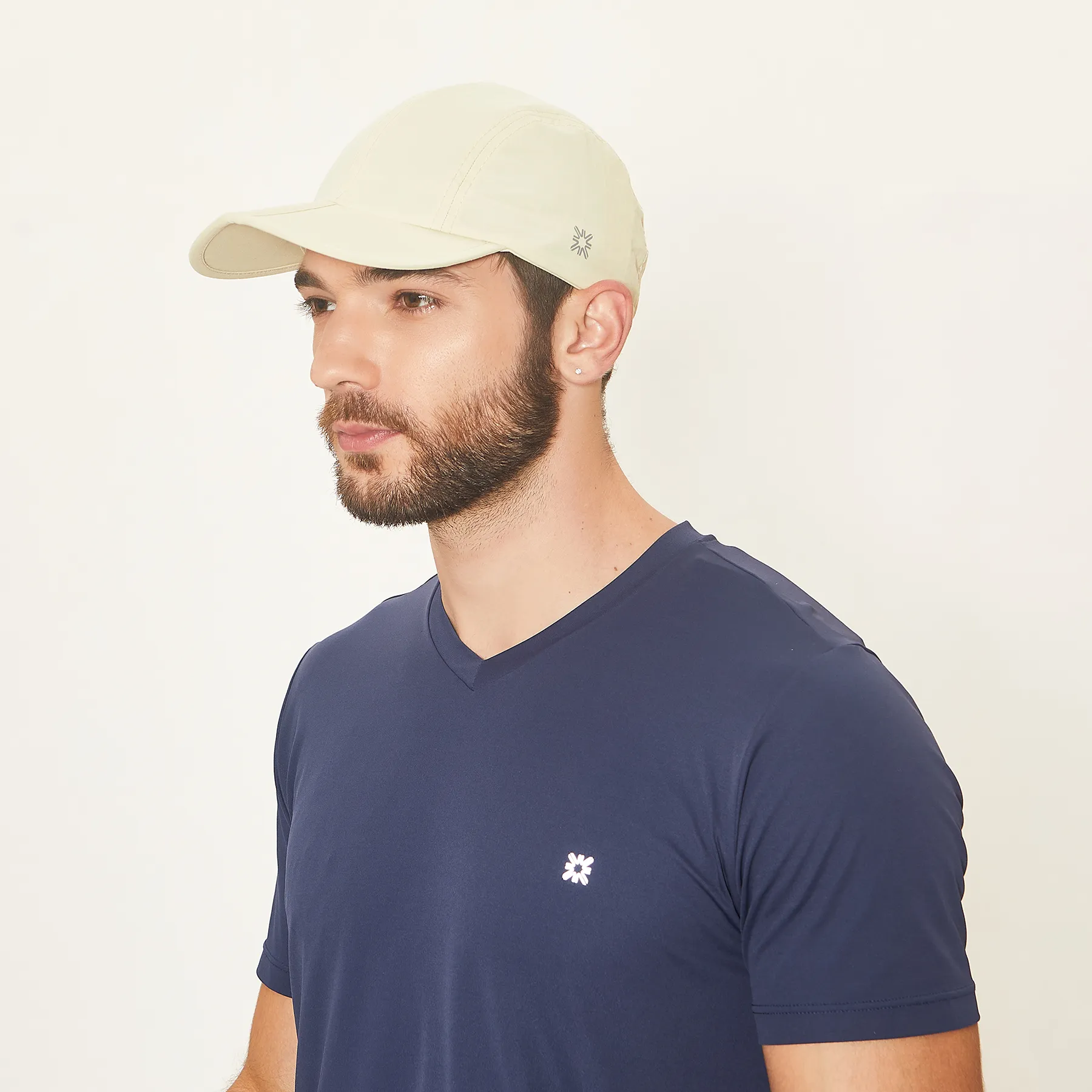 A proteção FPU50+ é incorporada ao fio têxtil, garantindo barreira permanente contra os raios solares. A aba dobrável permite guardar o boné sem danificar a estrutura, mantendo sempre o formato perfeito para proteção do rosto.