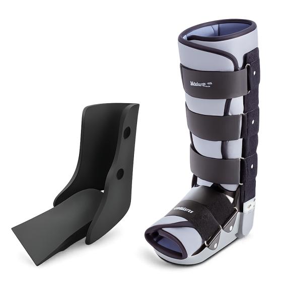 A Bota Imobilizadora Robofoot Longa com Achilles Kit Salvapé é um dispositivo ortopédico criado com base em protocolos de reabilitação para lesões do tendão de Aquiles. Ela oferece suporte rígido e um sistema de regulagem de inclinação em flexão plantar, permitindo evolução progressiva do posicionamento do tornozelo durante o tratamento.