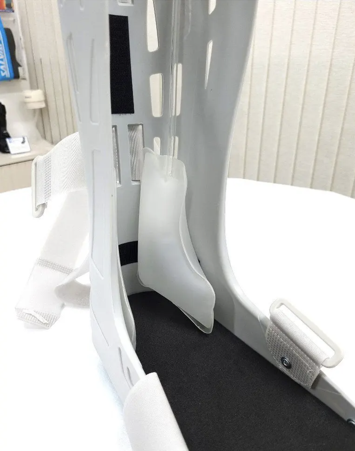 Projetada para oferecer suporte eficiente durante o tratamento de lesões, ela possui células de ar bilaterais independentes, permitindo ajustar a pressão em cada lado da perna de forma personalizada. Esse sistema auxilia na redução do inchaço, no controle da dor e no suporte durante o processo de recuperação.