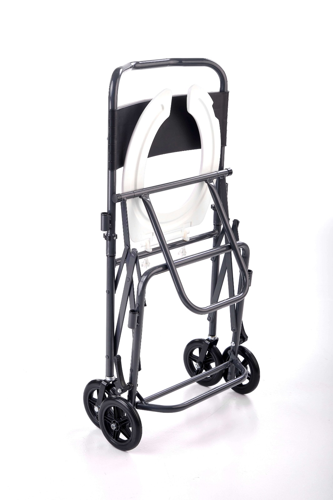 - Apoio de pés escamoteável para melhor posicionamento durante a higiene.