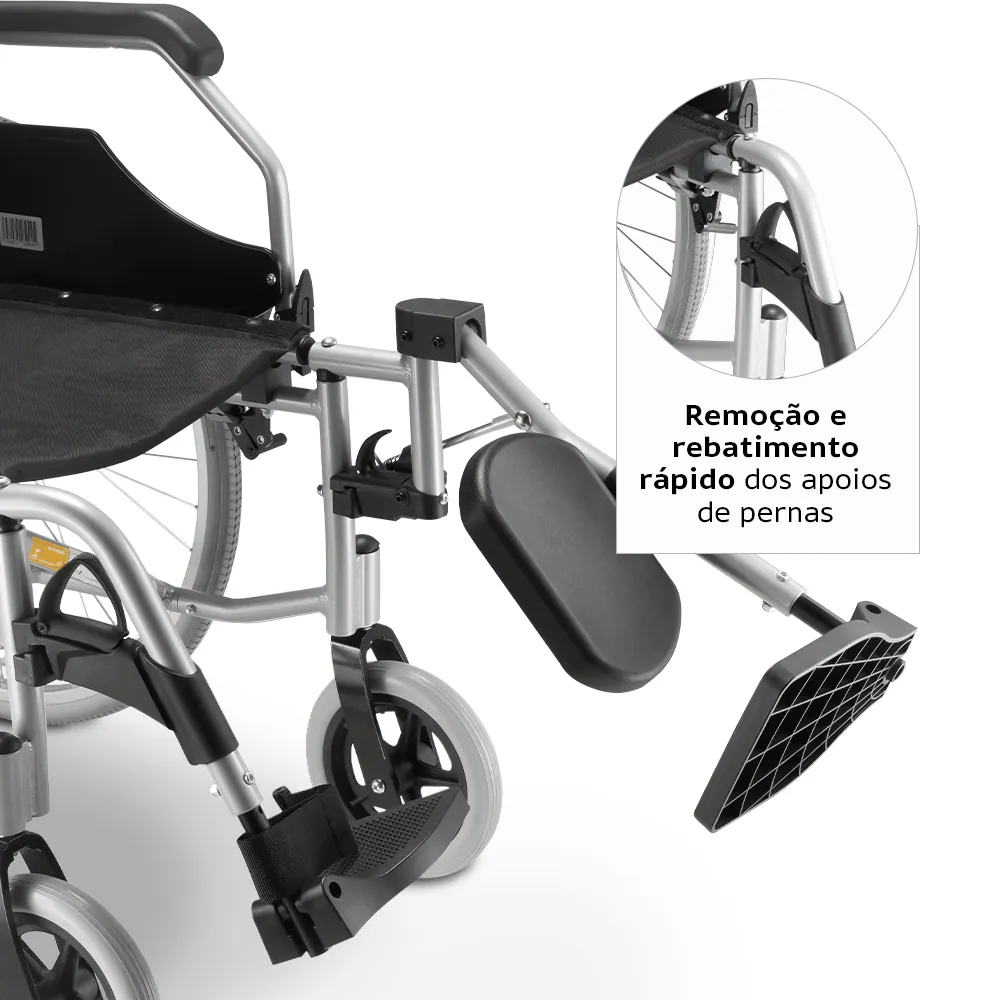 Quick-release é um sistema que permite remover as rodas traseiras em poucos segundos, sem uso de ferramentas. Isso facilita muito na hora de colocar a cadeira no porta-malas: você separa as rodas do chassi, reduz o volume e carrega cada parte separadamente. Na hora de montar, basta encaixar e travar.