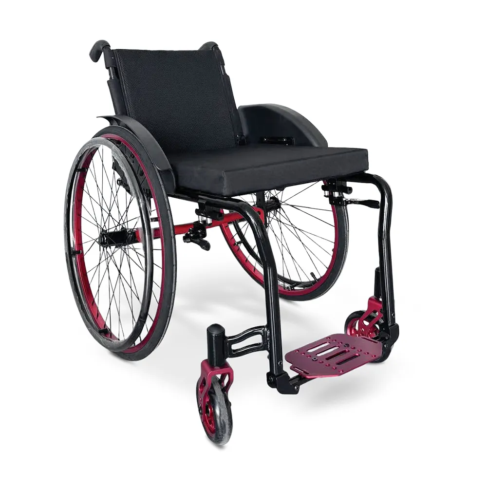A estrutura monobloco entrega resposta direta na propulsão, reduz o peso e aumenta a durabilidade. O encosto reclinável e ajustável alivia pontos de pressão; o assento em faixas de tensão distribui o peso e amplia o conforto. Ajustes no apoio de pernas, protetor de roupas e centro de gravidade permitem personalização fina para mais eficiência e segurança.