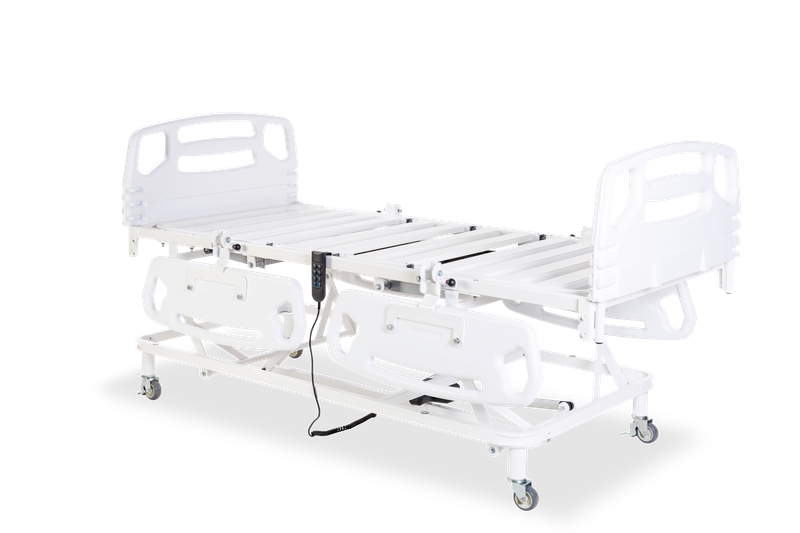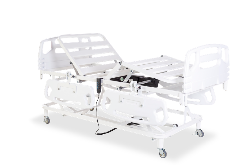 Com estrutura em aço carbono com pintura eletrostática branca e grades laterais em PEAD (Polietileno de Alta Densidade), a cama une robustez, higiene e fácil manutenção — características essenciais para o uso clínico e domiciliar.