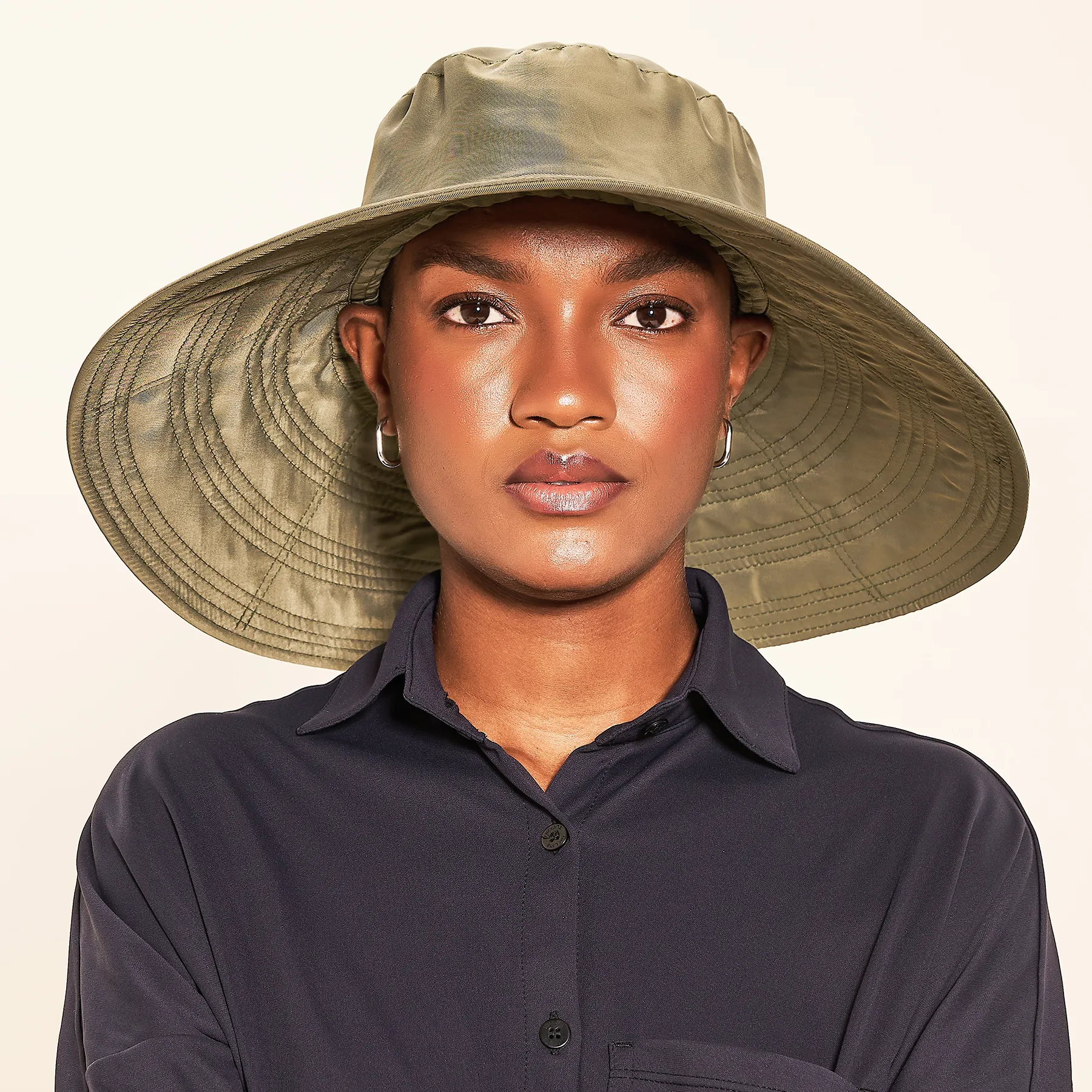 Seu design exclusivo conta com maxi aba, garantindo proteção completa para rosto, colo, nuca e ombros, e pode ser usado de diferentes maneiras: com a aba maior voltada para a frente, para as laterais ou para trás, adaptando-se à posição do sol ou ao estilo desejado.
