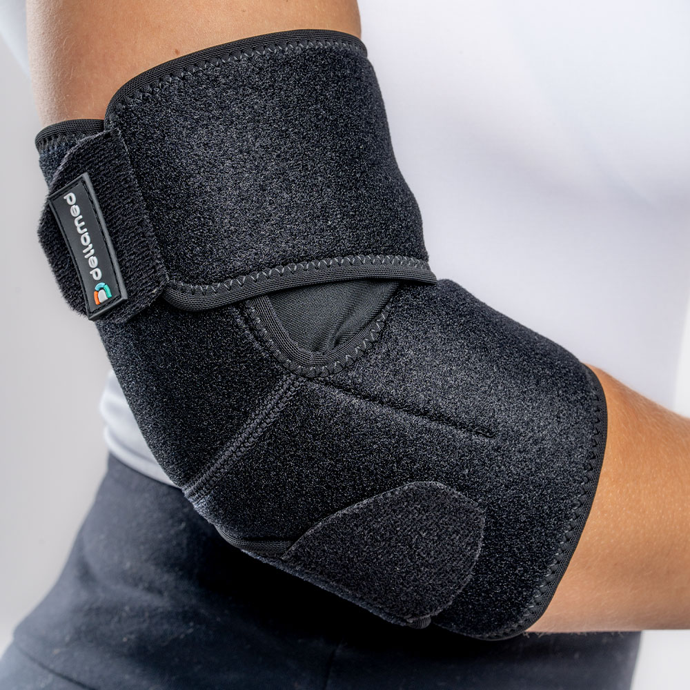 Para que serve a Cotoveleira Ajustável Dellamed? Suporte, compressão e alívio térmico para dores, inflamações ou prevenção no cotovelo.