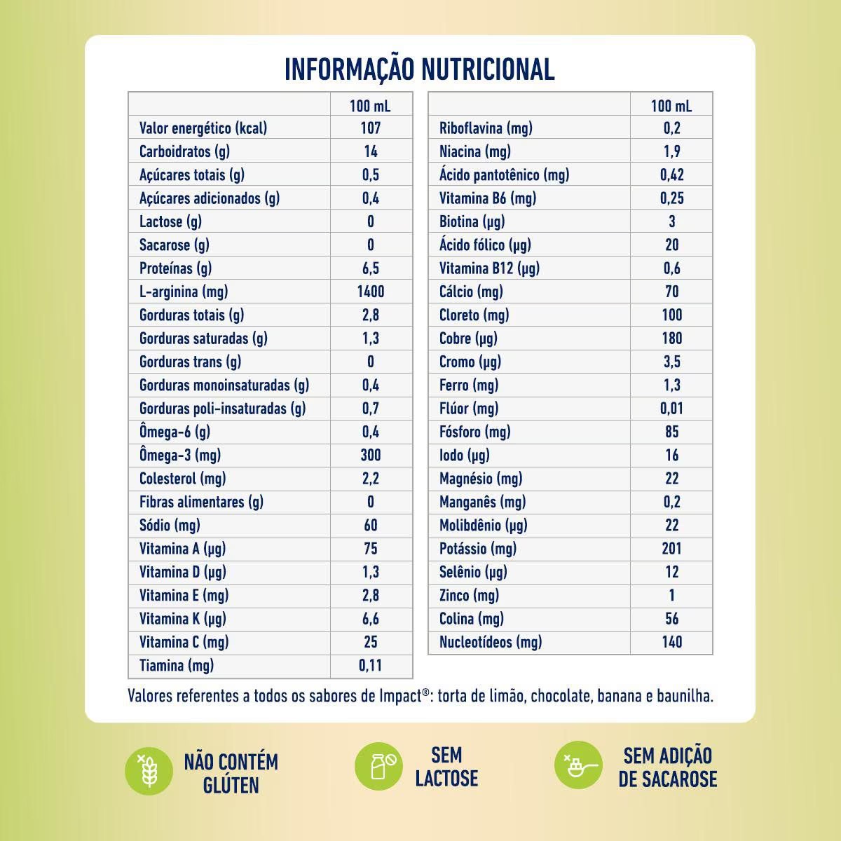 O Impact® da Nestlé Health Science é uma fórmula nutricional completa, desenvolvida para auxiliar o organismo em momentos de alta exigência metabólica, como no pré e pós-operatório, em internações hospitalares, processos de cicatrização ou situações clínicas críticas. Com composição imunomoduladora exclusiva, ajuda a fortalecer o sistema imunológico e pode contribuir para a redução do tempo de internação e das complicações associadas.