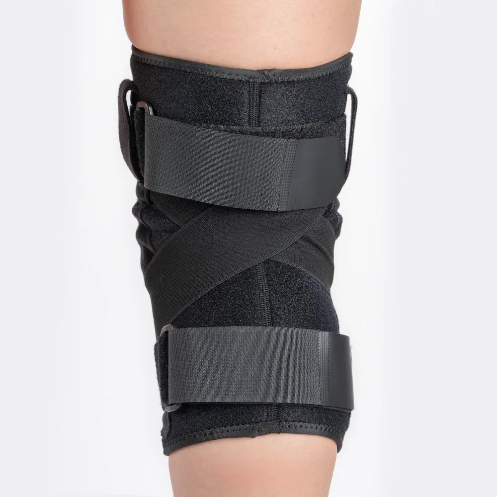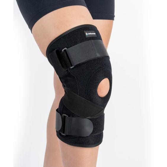 Para que serve a Joelheira Articulada com Cintas Cruzadas? Estabilização ligamentar, prevenção de hiperextensão e recuperação de lesões no joelho.