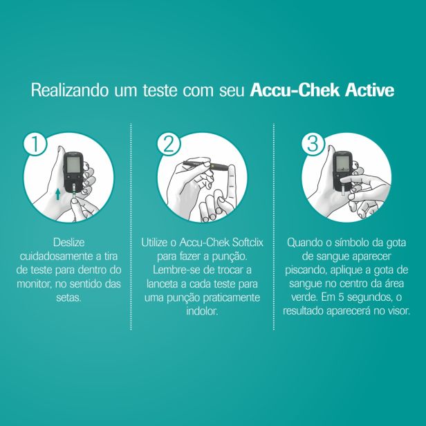 Com uso prático e resultados rápidos, o Accu-Chek Active contribui para que o controle da glicemia se torne parte da rotina, ajudando a manter o acompanhamento mais consistente.