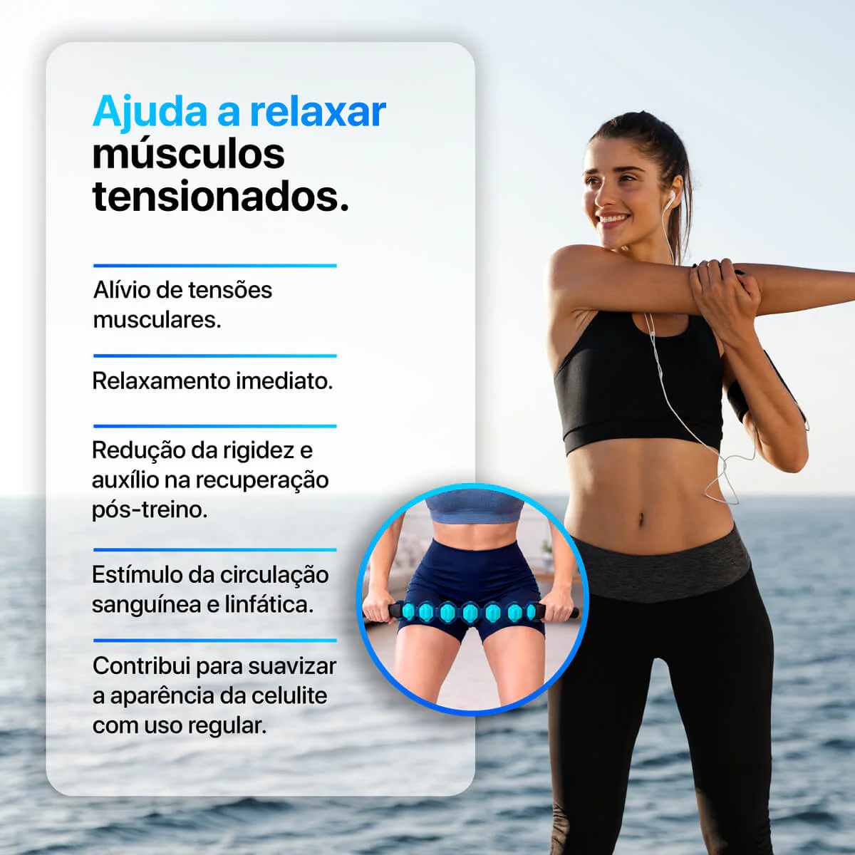 O produto auxilia no alívio de tensões e desconfortos musculares, promovendo sensação de relaxamento e bem-estar. É importante ressaltar que o massageador não substitui tratamentos médicos ou fisioterapêuticos em caso de dores crônicas ou patológicas.
