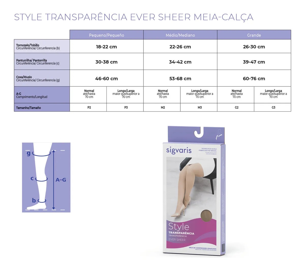 A Ever Sheer 782A combina compressão graduada 20–30 mmHg com fio ultrafino e toque macio para reduzir inchaço, aliviar dores e melhorar a circulação — mantendo um visual discreto e sofisticado.