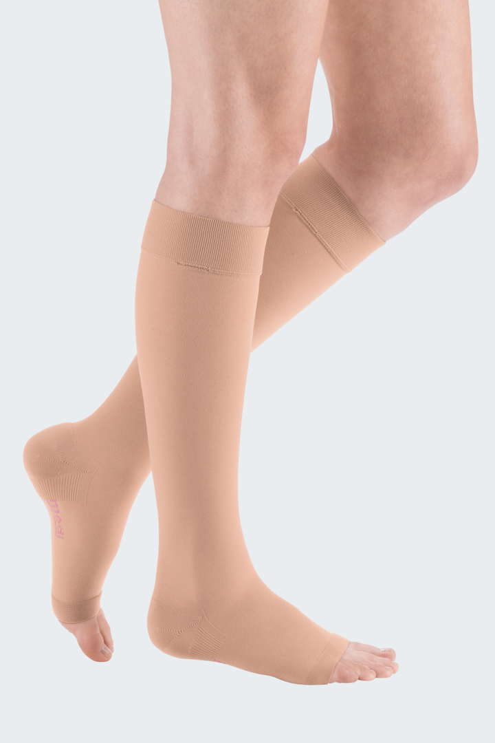 Meia elástica com ótima durabilidade e material resistente por um preço acessível. Meia de compressão de malhar circular destinada ao tratamento de trombose, edemas leves, varicoses na gravidez e doenças venosas. Também recomendada para o tratamento após escleroterapia e / ou cirurgia.