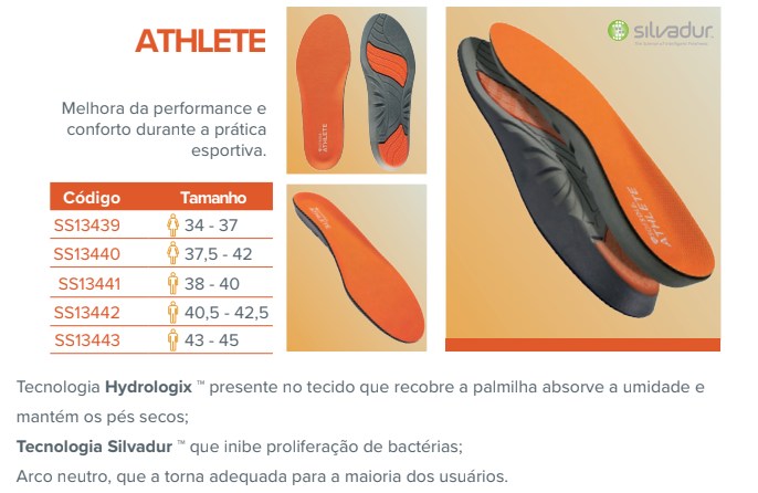 A tecnologia HydroLogix® atua na camada superior da palmilha, absorvendo a umidade e mantendo os pés secos, enquanto o tratamento Silvadur™ oferece proteção antibacteriana, evitando odores e promovendo sensação de frescor prolongada.