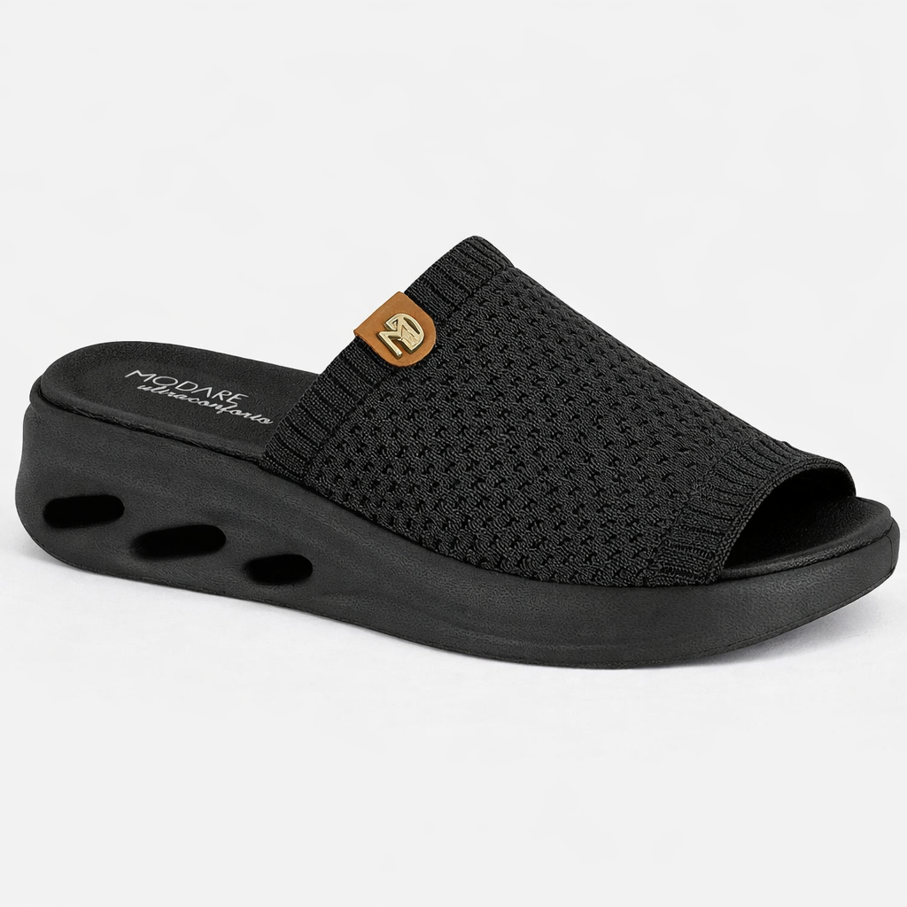O Tamanco Modare Gáspea Knit Milão 7215.105 é um calçado feminino flat com tiras confeccionadas em tecido knit — uma malha tecnológica respirável que se adapta ao formato natural do pé, proporciona ventilação constante e elimina os pontos de atrito que causam bolhas e desconforto. O modelo gáspea pronta dispensa fechos, fivelas ou ajustes, permitindo calce imediato e prático no dia a dia. A palmilha Ultracomfy, desenvolvida com espuma anatômica e pontos de amortecimento estratégicos, distribui a pressão ao longo de toda a planta do pé, reduzindo a fadiga em longas jornadas. O resultado é um tamanco que combina estilo, respiração e tecnologia de conforto para mulheres que usam o calçado o dia inteiro — no trabalho, em casa ou em compromissos casuais.