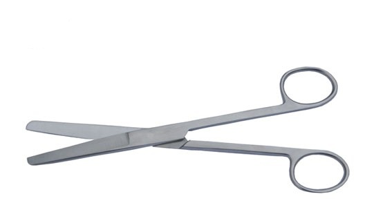Tesoura cirúrgica romba romba reta. Tamanho: 12cm.