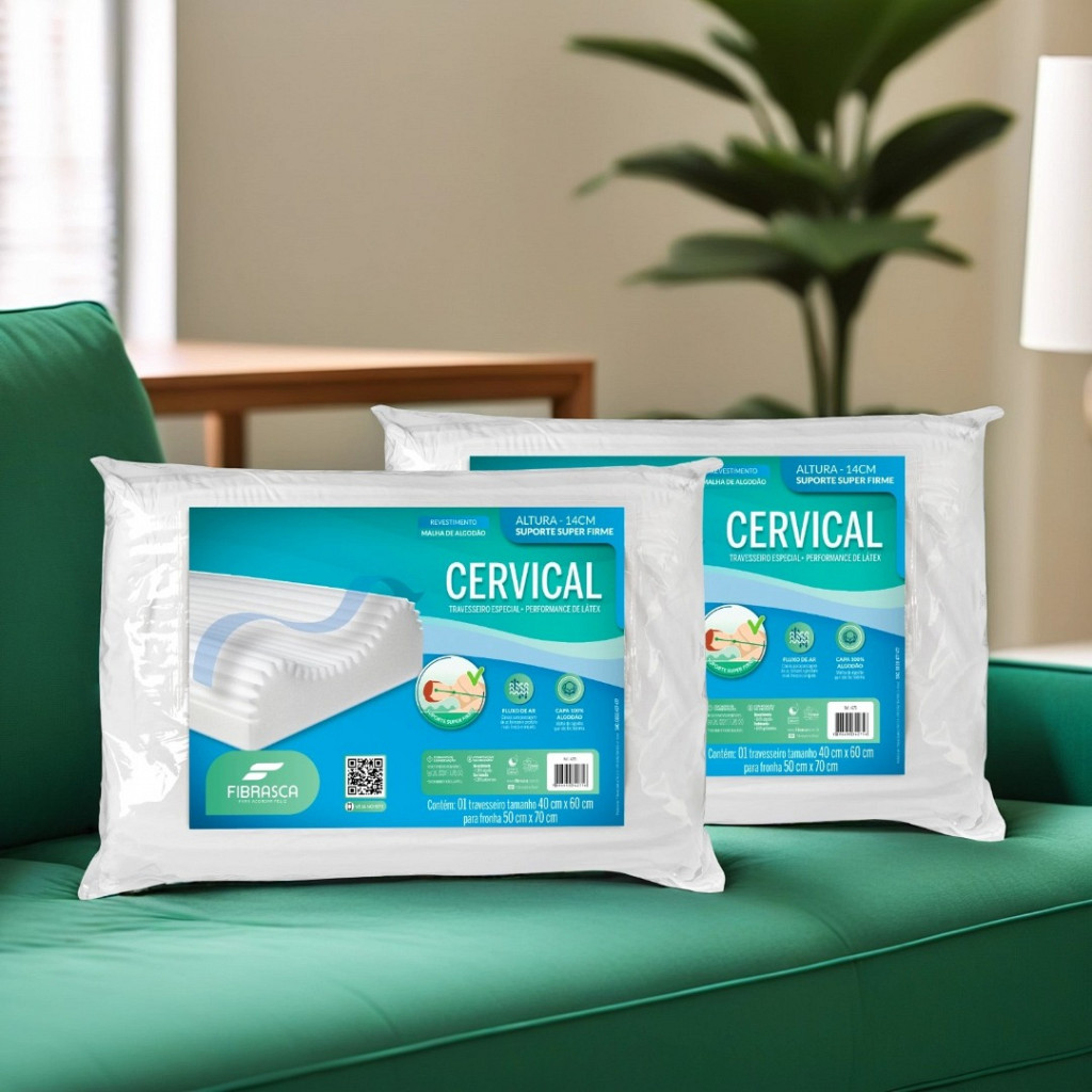 O Travesseiro Cervical Lavável Fibrasca é um travesseiro ergonômico desenvolvido para promover o encaixe anatômico perfeito da cabeça e do pescoço durante o sono. Com formato perfilado e dois elevados laterais, ele se adapta à curvatura cervical natural e mantém o alinhamento correto da coluna — seja dormindo de lado ou de costas.