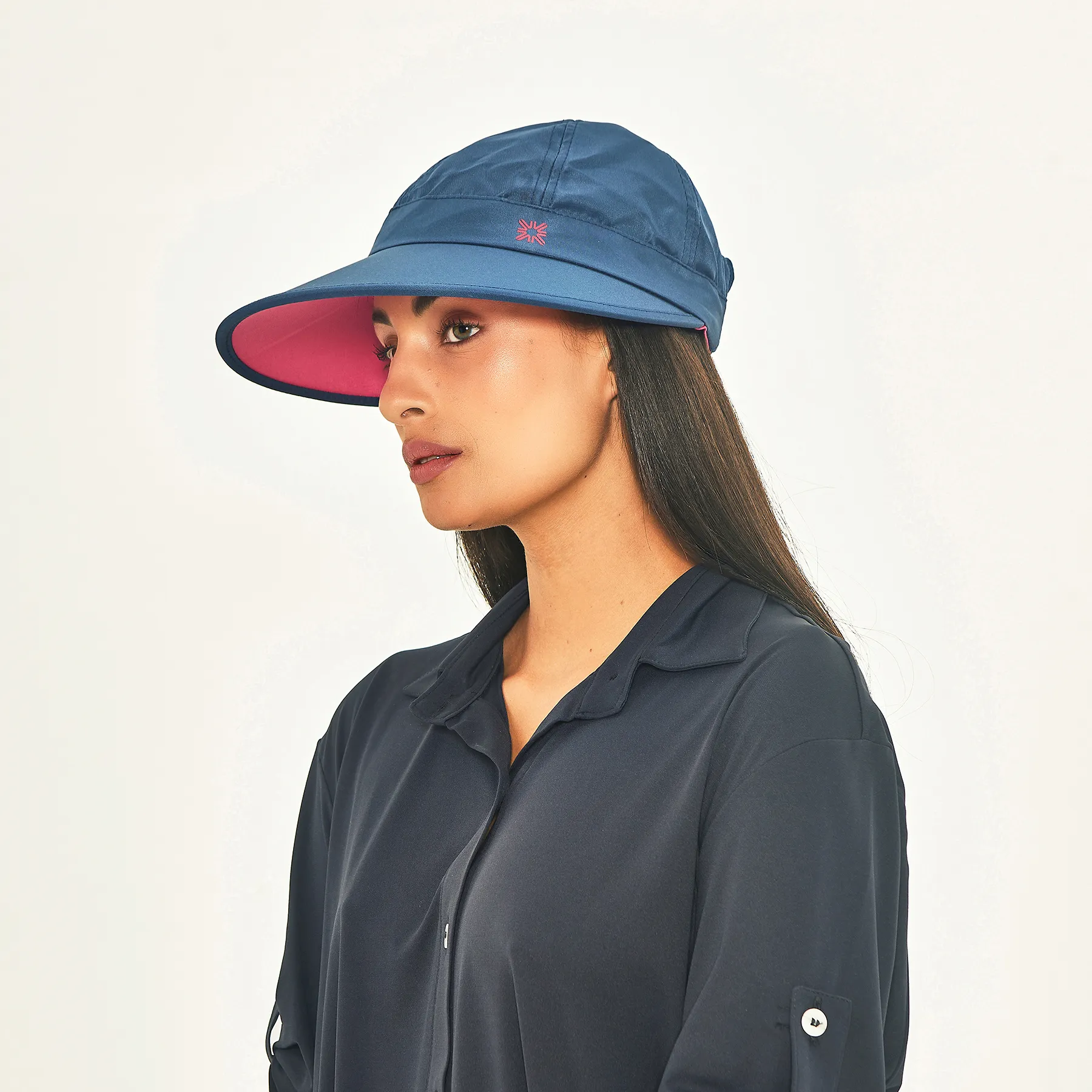 A Viseira UV Capri Colors FPU50+ é o modelo com a aba mais larga da coleção, garantindo proteção ampliada para o rosto durante caminhadas, corridas, praia, piscina e atividades ao ar livre. Sua copa fechada protege a cabeça do calor e da incidência direta dos raios UV, tornando-se uma escolha ideal para quem busca segurança e conforto sob o sol.
