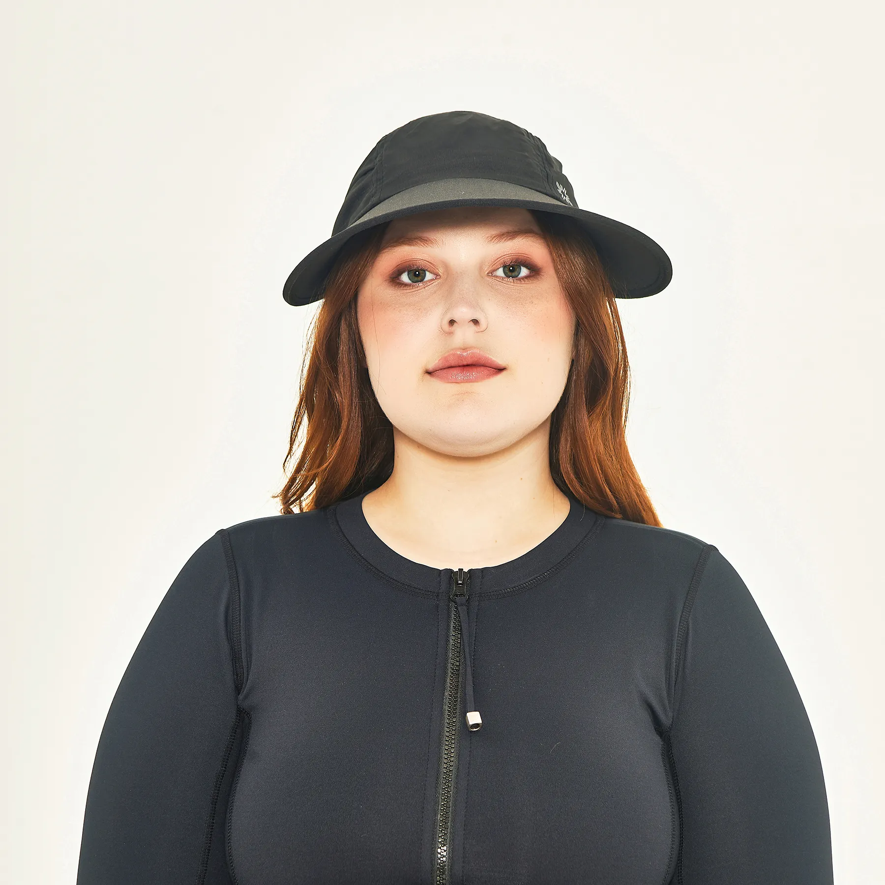 A aba larga cria uma barreira física efetiva contra a radiação UV, reduzindo riscos de queimaduras, manchas e fotoenvelhecimento. A copa fechada diminui o aquecimento direto do couro cabeludo, oferecendo mais conforto térmico durante a prática de exercícios.